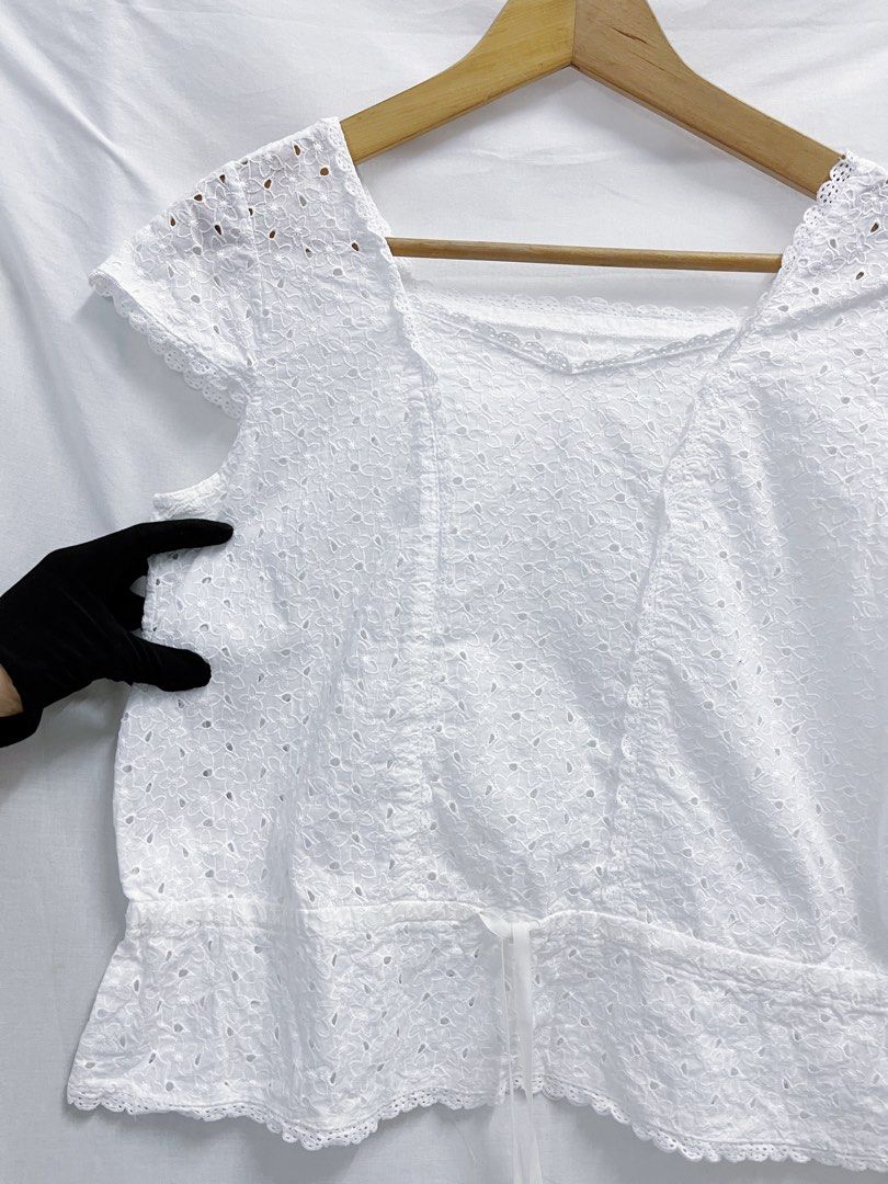 Pretty White Cotton Embroidery Eyelet Blouse Women S Fashion Tops Blouses On Carousell